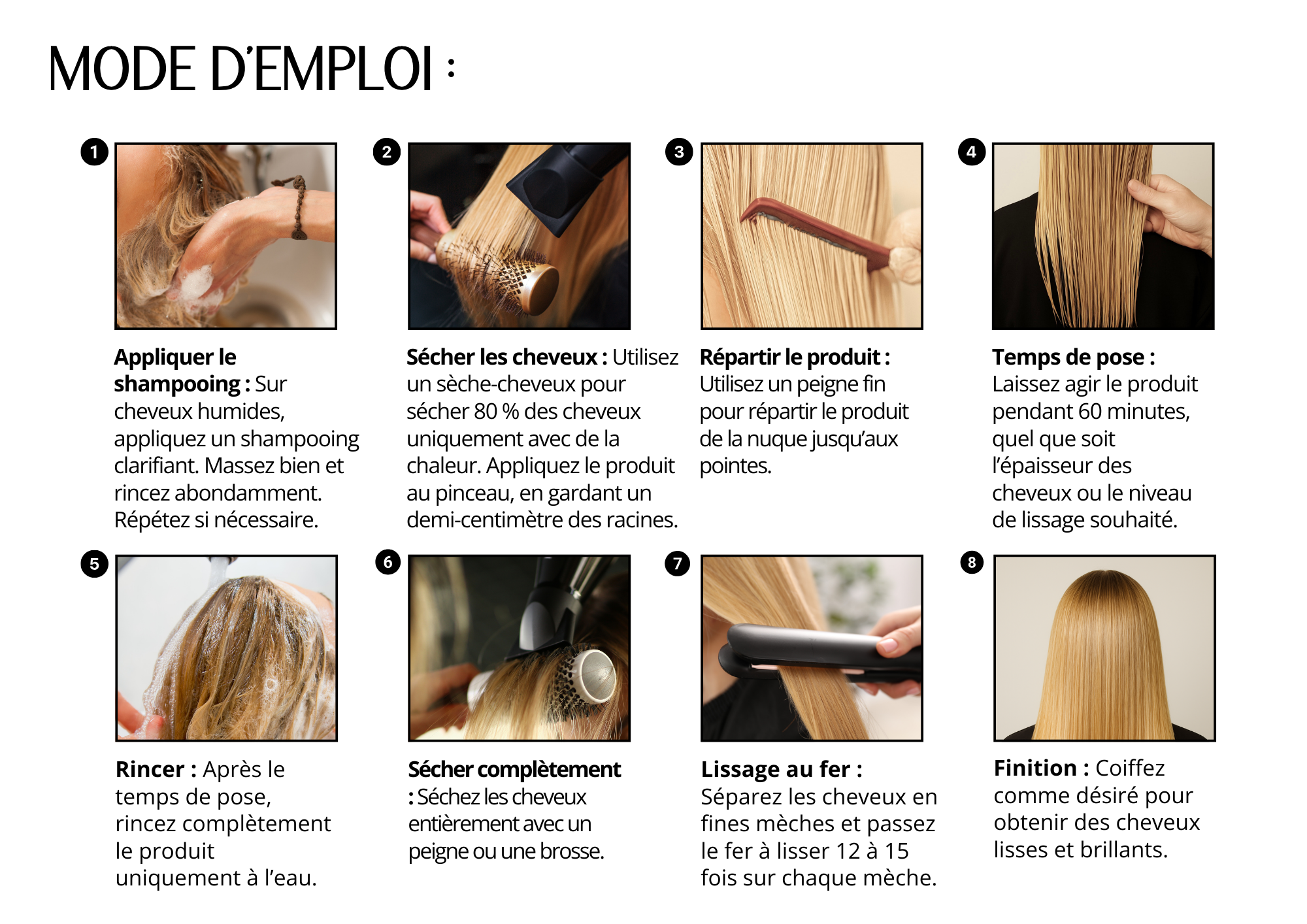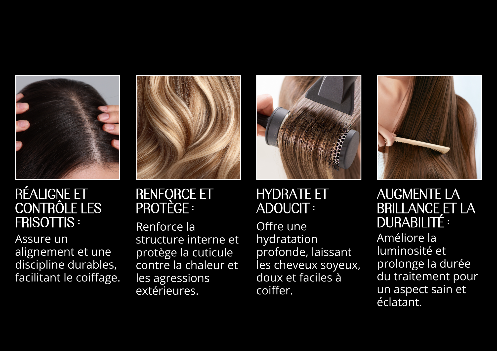 Fournit un lissage durable et contrôle les frisottis, facilitant le coiffage.